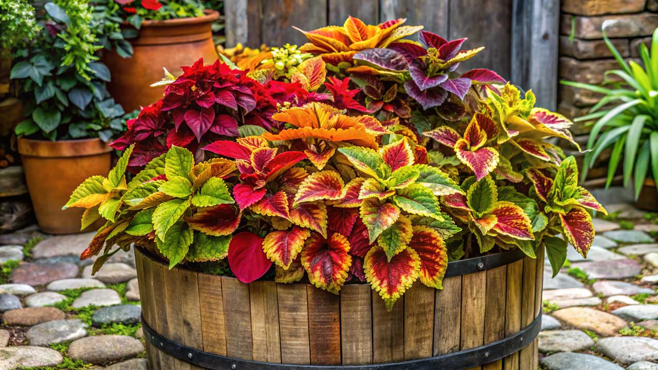 Koleus, rengarenk yapraklarıyla gölgeli köşelere enerji katar. Özellikle balkon, teras ve verandalar için çok tercih edilir.