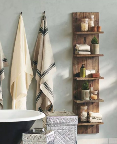 Aşağıdaki örneklerde görebileceğiniz gibi, özellikle ahşap raflar banyonuza kır evi stilinde bir çekicilik katar. Cam ya da metal raflar ise daha modern bir stil oluşturmanızı sağlar.